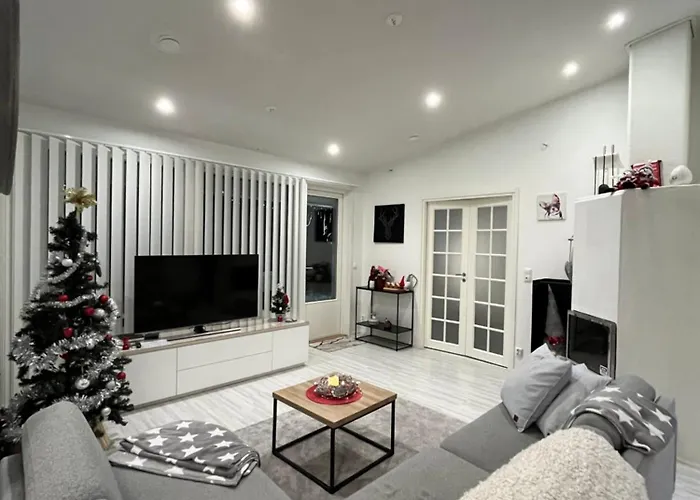 この浴室2室の別荘はロヴァニエミ空港から5㎞圏内で、木こりのろうそく橋などの文化的名所から車で10分くらいです。 オウナスヴァーラ・スキーリゾートはこの別荘から8km以内で、ロルディ広場から4.4キロメートルの距離にあります。